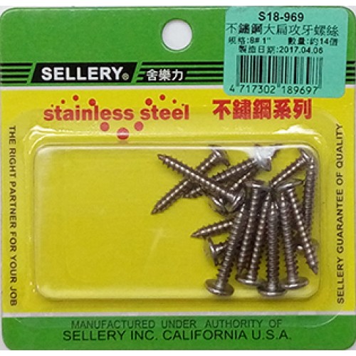 螺絲#8 x 1" 不銹鋼大扁攻牙