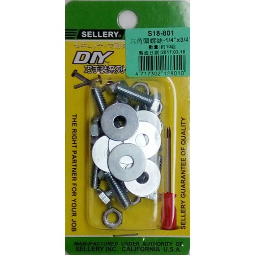 螺絲螺母組1/4"x 3/4"六角頭